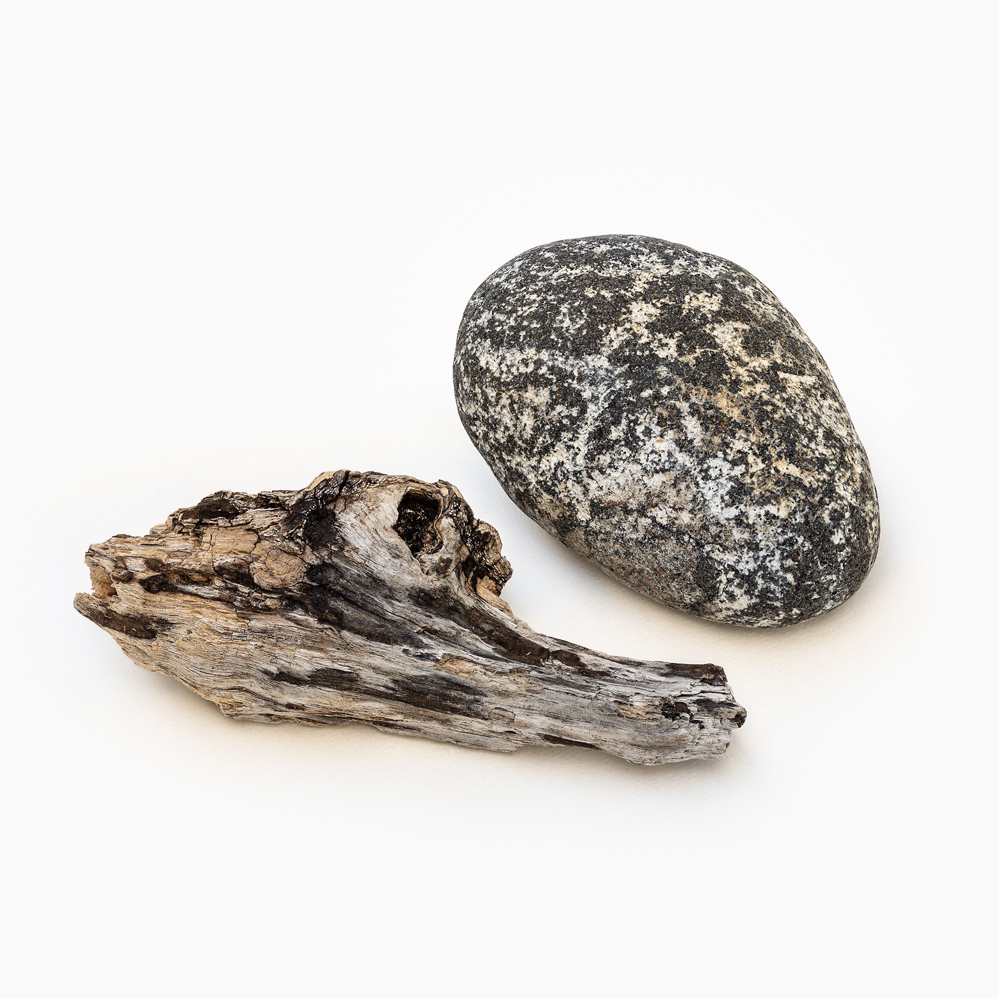 Exploring similarities in colour and pattern between driftwood and beach pebbles.